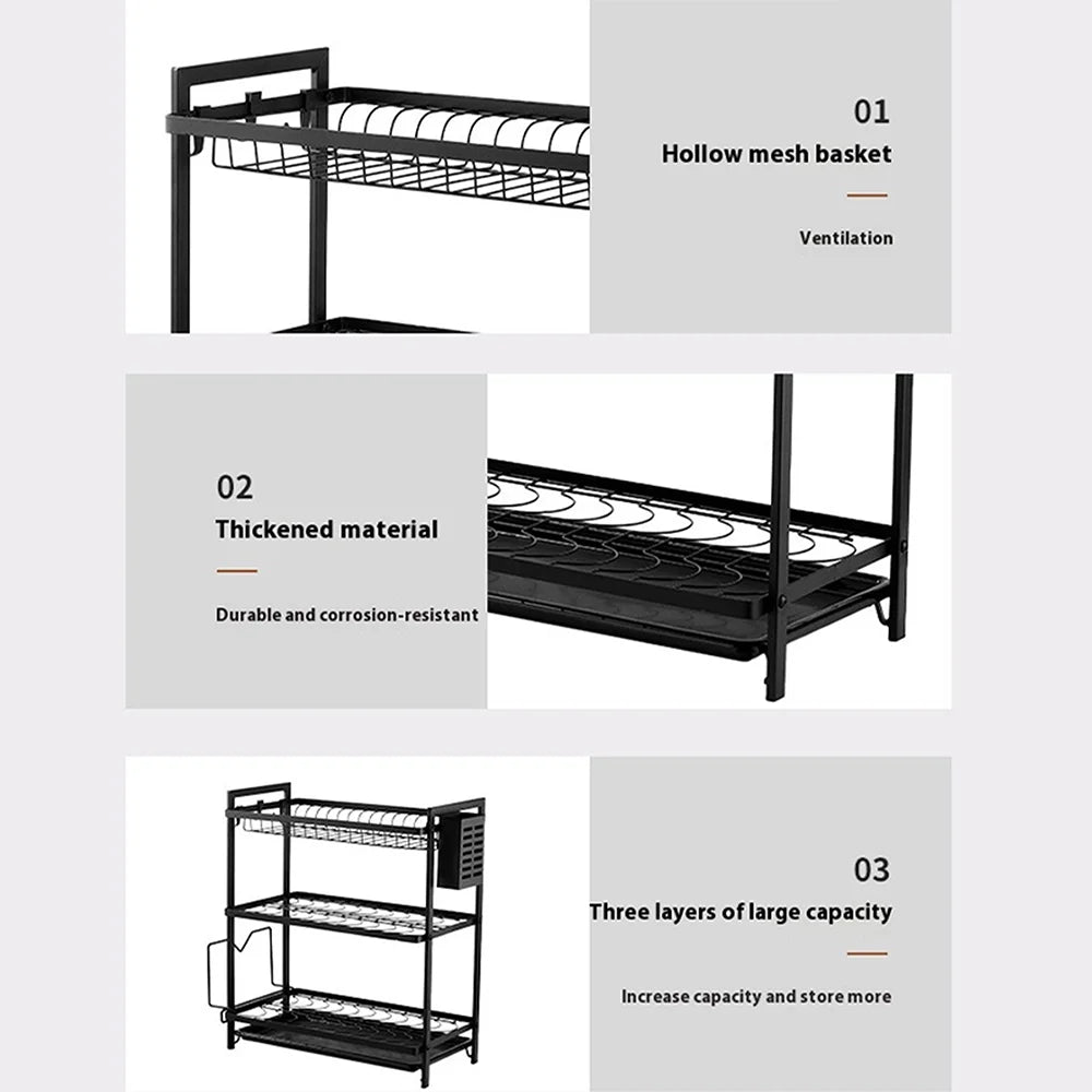 Upgrade your kitchen today with this3-Layer Dish Drying Rack– the ultimate solution for efficient dish drying and storage!